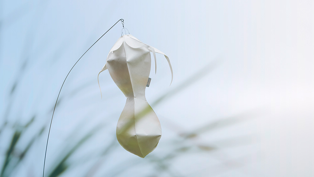 Die verhältnismäßig kleine, kugelige Nussform eignet sich gut, um eine Solar-LED-Leuchte zu integrieren und zum Beispiel den Garten stimmungsvoll zu erleuchten. Der außen sichtbare Beleuchtungsring des Windspiels schmiegt sich harmonisch an den oberen Nusskopf an. Auf den Flügeln der Frucht lässt sich der optionale Aufdruck mit Schriftzug oder Logo gut verwirklichen.