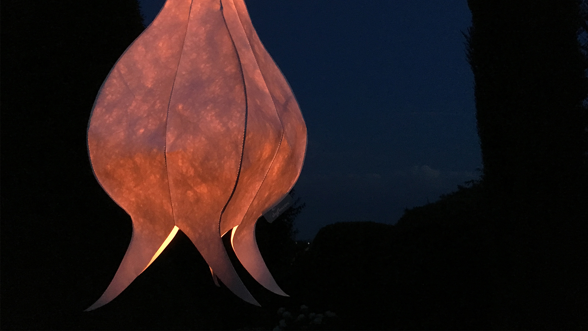 Die skyflowers Trompetenblume lässt sich problemlos mit der optionalen LED-Beleuchtung ergänzen. Der Blütenkörper kapselt das Licht ohne große Streuverluste wirkungsvoll ein. Eine Beschriftung oder Logo-Aufdruck ist aufgrund der schmalen Flächen und der mehrfach auftretenden Kanten und Falten nicht empfehlenswert. Lediglich ein vertikal verlaufender Schriftzug könnte unter bestimmten Umständen ein zufriedenstellendes Ergebnis liefern.