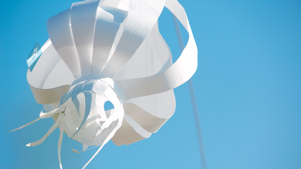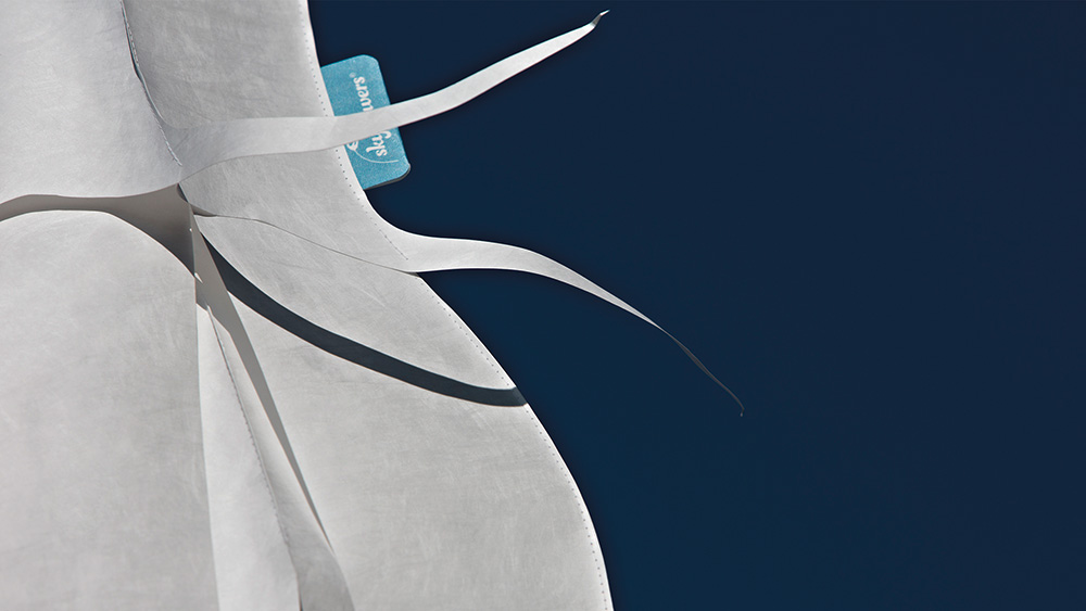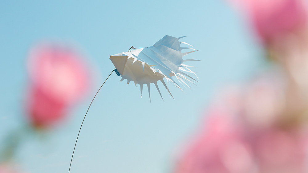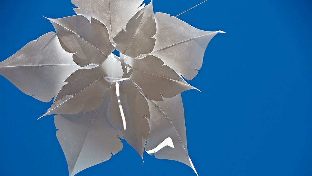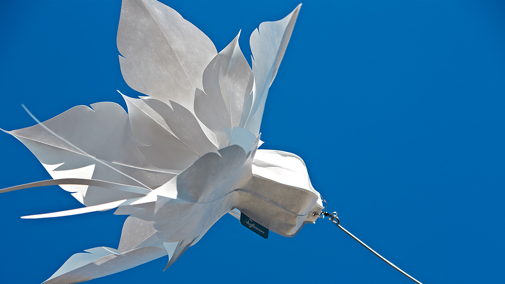 Der skyflowers Stechapfel ist in zwei Größen erhältlich. Die kleine Blüte (small) erreicht eine Länge von ca. 57 cm, der Durchmesser der Blütenkrone beträgt ca. 25 cm. Die größere Ausführung (medium) hat noch etwas mehr Angriffsfläche für den Wind und misst eine Länge von ca. 85 cm bei einem Durchmesser von ca. 50 cm. In der Bewegung zeigt der Weiße Stechapfel fließende, gleitende und leicht drehende Figuren. Bei unseren Kunden stehen beide Größen hoch im Kurs. Der Stechapfel besteht aus insgesamt zehn Schnittteilen.