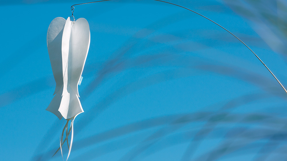 Die Kapsel liegt aerodynamisch im Luftstrom und lässt sich gerne vom Wind tragen. Die Keulenform verleiht dem Flammenden Käthchen sanfte, in sich ruhende Bewegungen und eignet sich so besten für Garten, Balkon oder Terrasse. Das Windspiel Flammendes Käthchen bringt es auf eine Länge von ca. 75 cm, die Flügel erreichen eine Breite von ca. 40 cm. Dieses skyflowers Windspiel besteht aus insgesamt fünf Schnittteilen und wird mittlerweile oft als Einstiegsmodell gewählt.